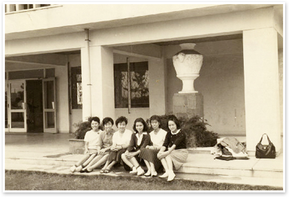 写真=福岡女子大に在学中の村上(右から3番目)は、料理の先生になるとは考えていなかった。